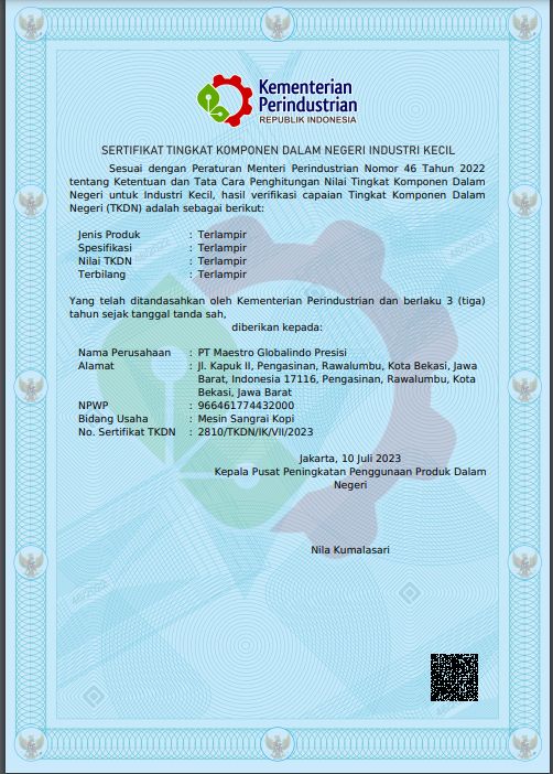 Pada era sekarang ini, dimana permintaan kopi supply dan peningkatan peminum kopi yang terus menanjak cepat adalah pilihan tepat untuk memulai bisnis di bidang coffee roaster. Dalam bisnis coffee roastery dapat sangat menguntungkan apabila mengandalkan mesin roasting kopi pabrikan Maestro Coffee Roaster yang terkenal dengan kualitas serta durability sehingga pengusaha roaster sangat di untungkan dalam menjalani bisnis dengan produk yang berkualitas dalam waktu jangka panjang. PT. Maestro Globalindo Presisi juga menjamin kenyamanan atas produk yang di gunakan setiap pelanggan nya dengan memberikan after sales yang baik.
